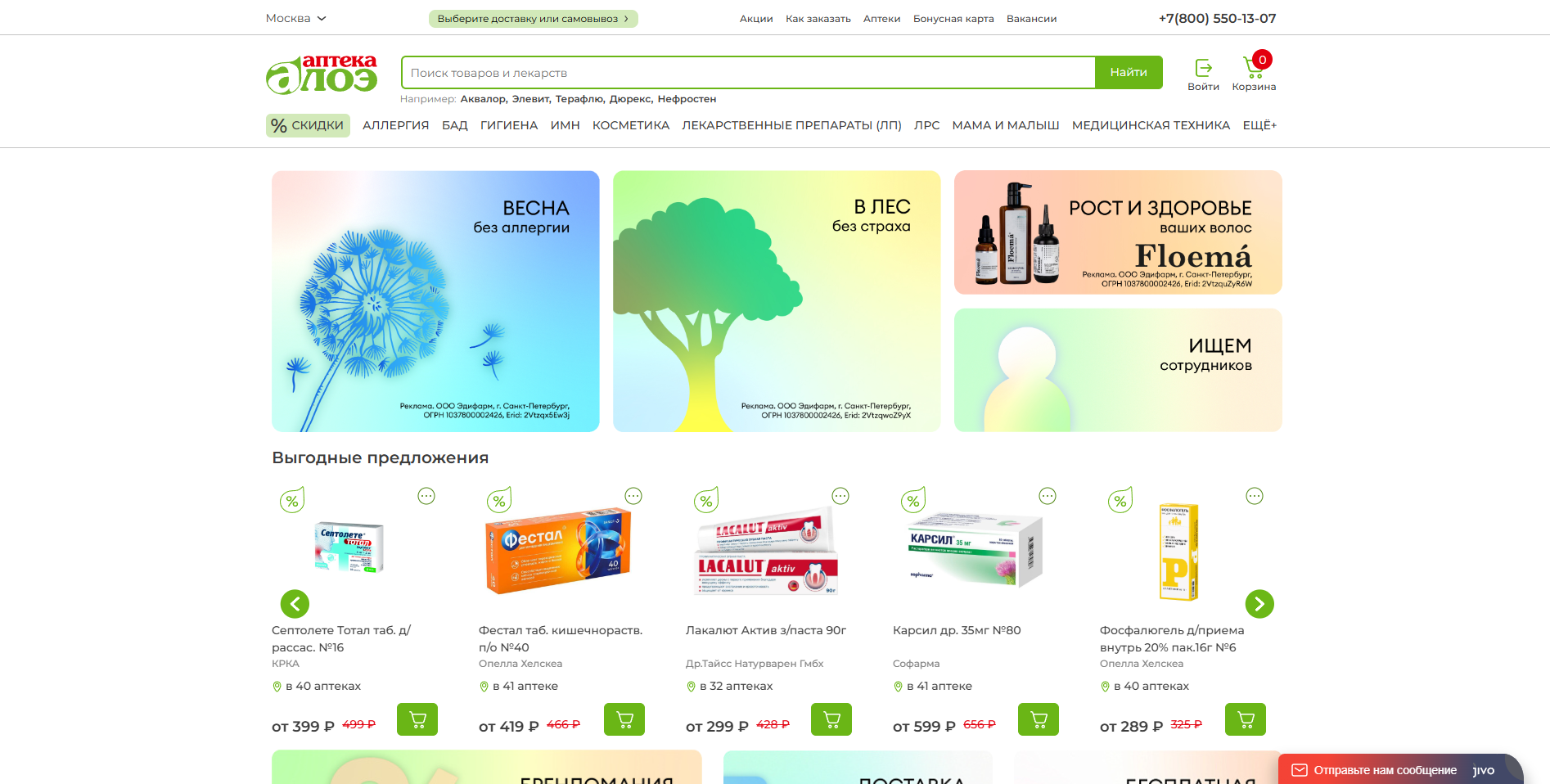 | Акция | Выгодные предложения со скидками до 40% от интернет-аптеки Алоэ | - |
