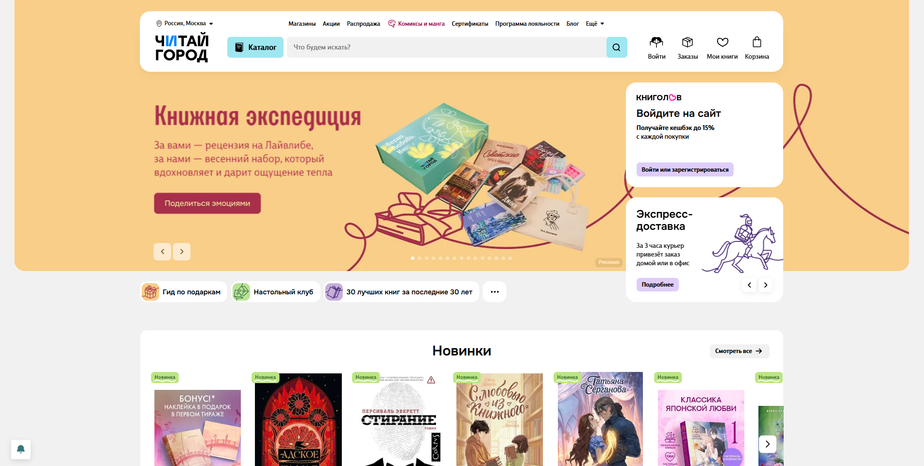 Читай-город — крупнейшая книжная сеть, объединяющая розничные магазины и удобный интернет-сервис для покупки литературы и сопутствующих товаров. Компания работает по всей России, предлагая миллионам читателей доступ к современным бестселлерам, классике и образовательным изданиям.