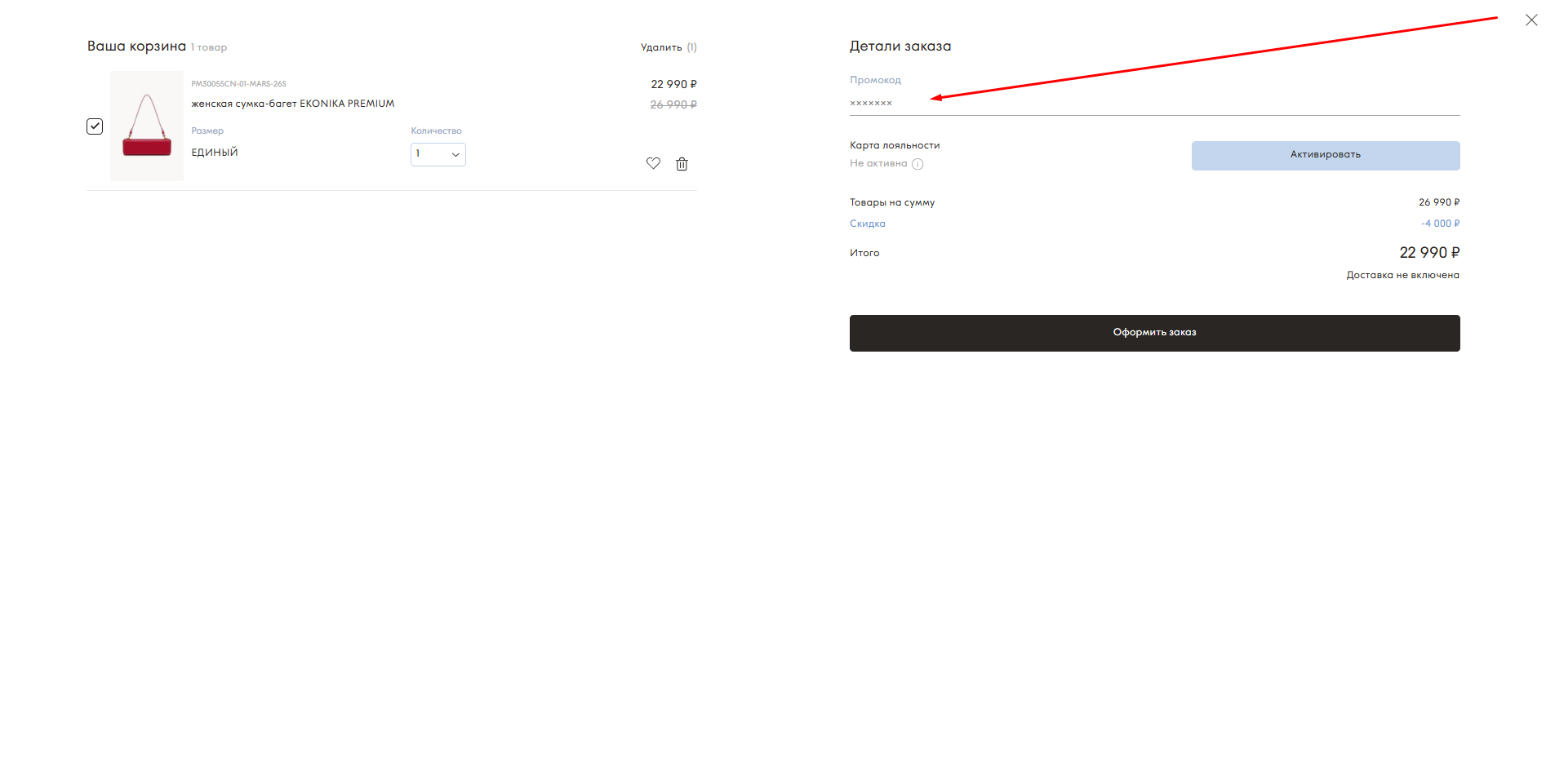 Найдите поле для ввода промокода.