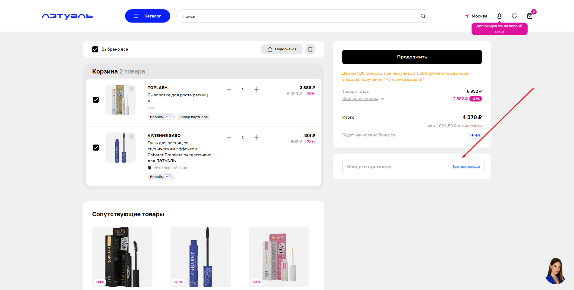 Промокод Летуаль на первый заказ 10% на сегодня