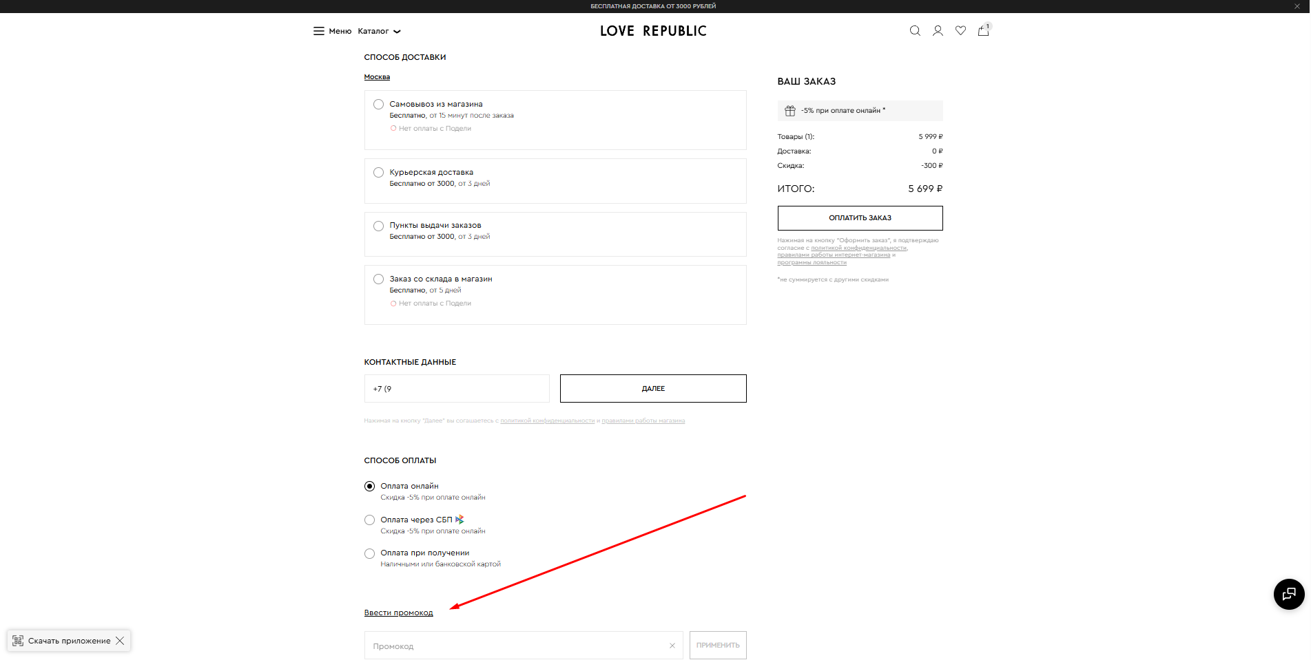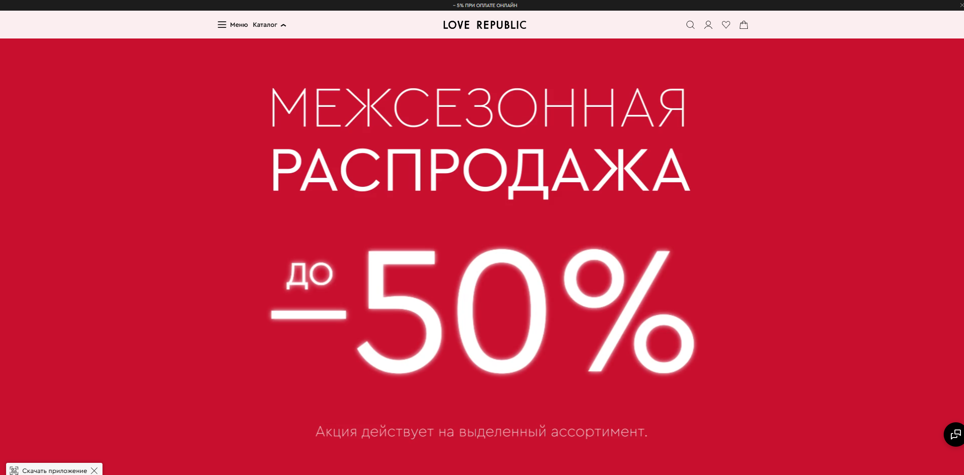 Скидка 5% при оплате онлайн в интернет-магазине Лав Репаблик
