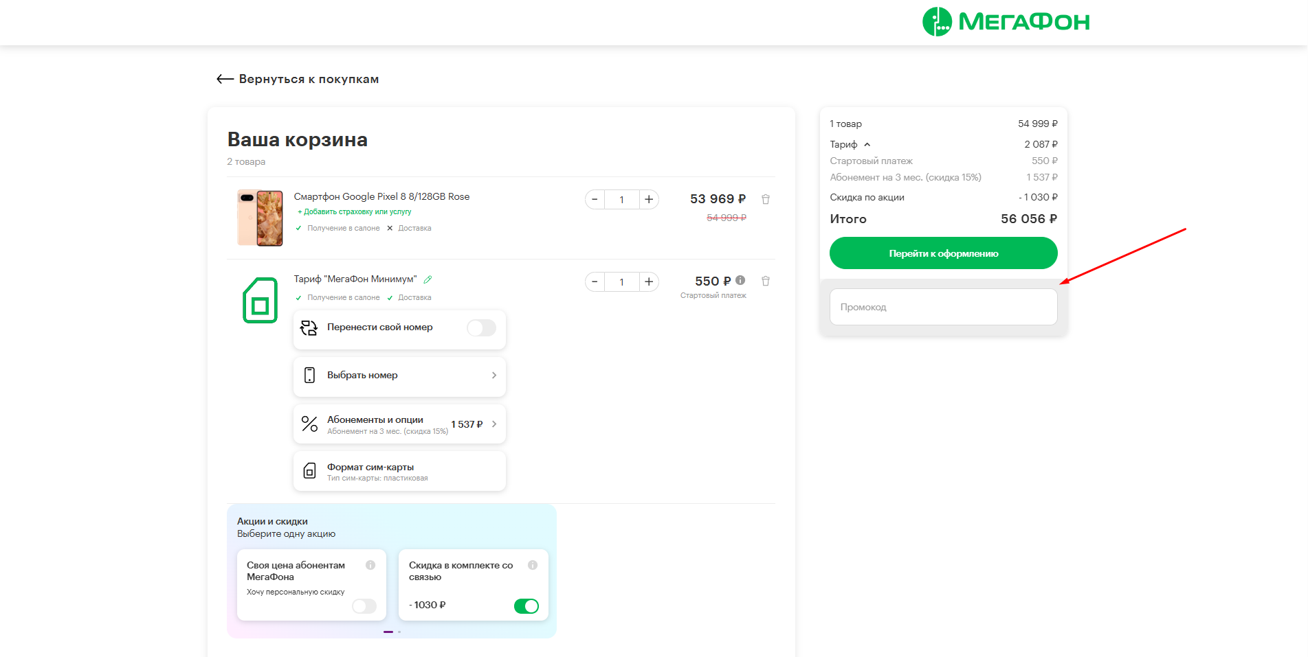 Промокод Мегафон на покупку телефона со скидкой 3000₽