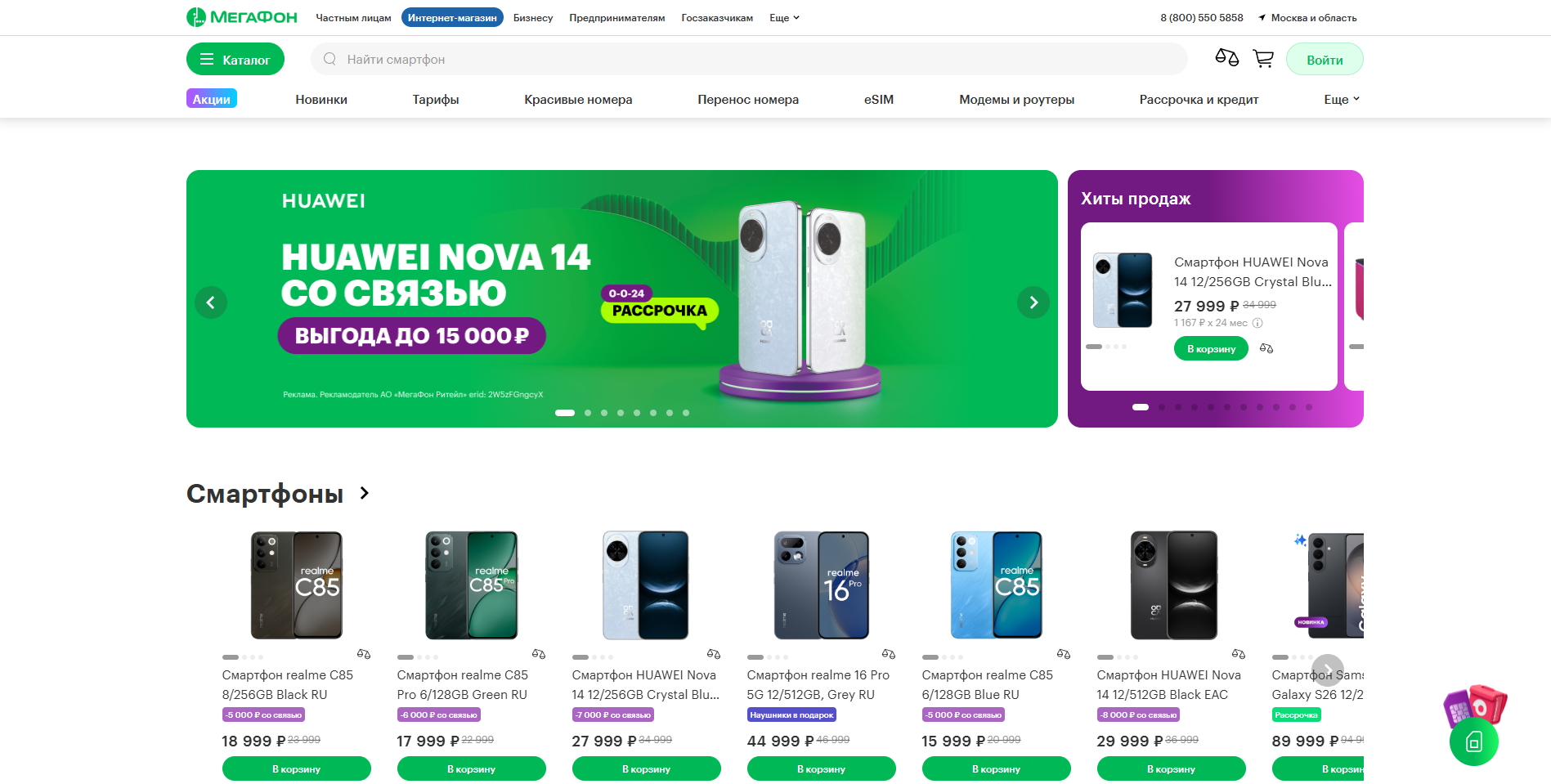 На shop.megafon.ru доступно оформление заказа онлайн, доставка, рассрочка и кредит. Для связи с магазином предусмотрены чат и бесплатный номер поддержки по России. Такой формат делает интернет-магазин МегаФон удобным не только для покупки смартфона, но и для подключения связи, домашнего интернета и сопутствующих услуг.