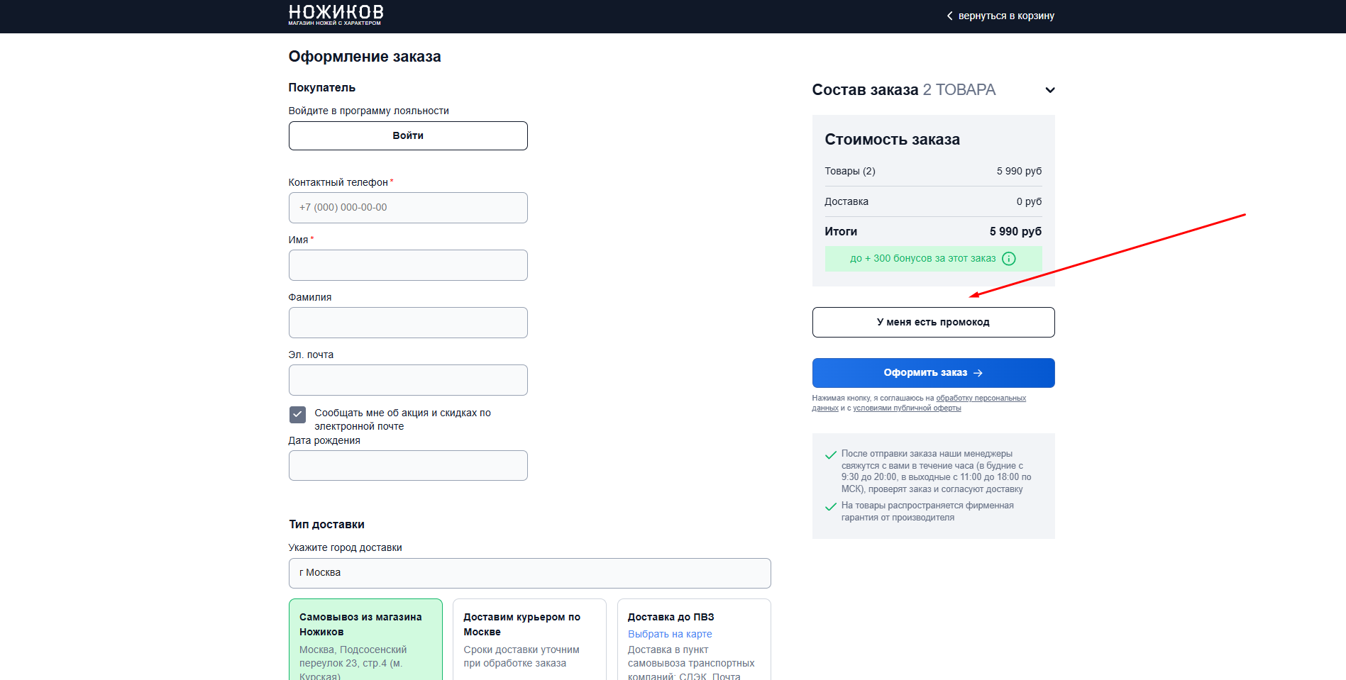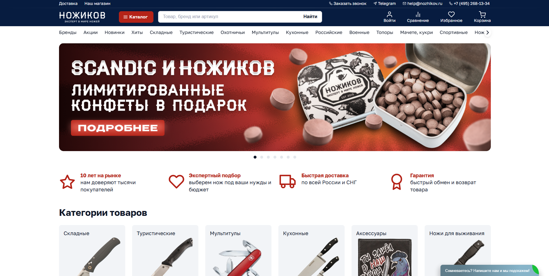 Промокод Ножиков на скидку 15% в интернет-магазине