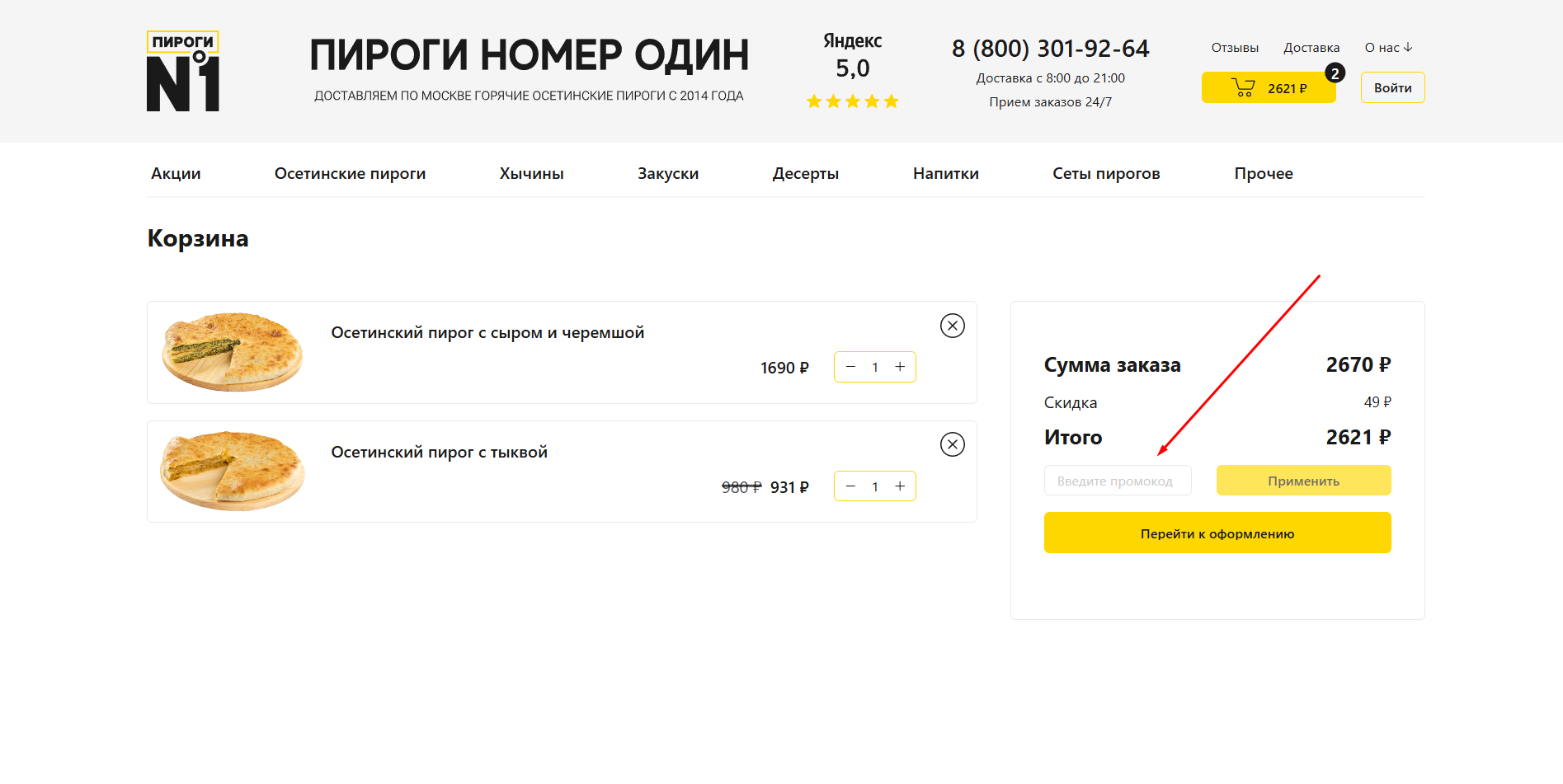 Как использовать промокод Пироги?