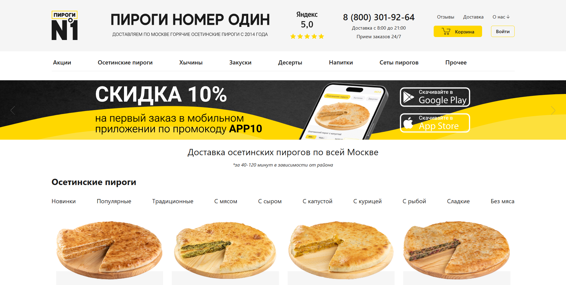 Пироги №1 — московская пекарня и сервис доставки осетинских пирогов, работающий с 2014 года. Компания делает акцент на традиционные рецепты, собственное производство в Москве и доставку по городу. Заказы принимаются круглосуточно, а доставка выполняется ежедневно в рабочие часы сервиса, что удобно и для дома, и для офиса. У бренда есть сайт, мобильное приложение и отдельный раздел с вопросами и ответами для клиентов.