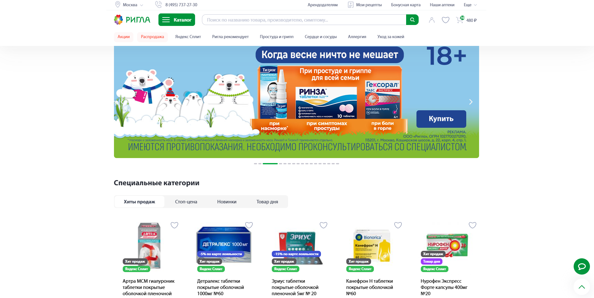 Ригла — крупная российская аптечная сеть, которая работает более 25 лет. Первые аптеки бренда появились в 2001 году, а сегодня сеть объединяет тысячи точек в десятках регионов страны. На сайте доступен широкий онлайн-каталог: здесь можно подобрать лекарства, товары для здоровья, красоты и повседневного ухода, а затем оформить заказ с самовывозом или доставкой. Это важно для тех, кто хочет быстро найти нужные препараты, сравнить цены и купить все необходимое в одном месте.