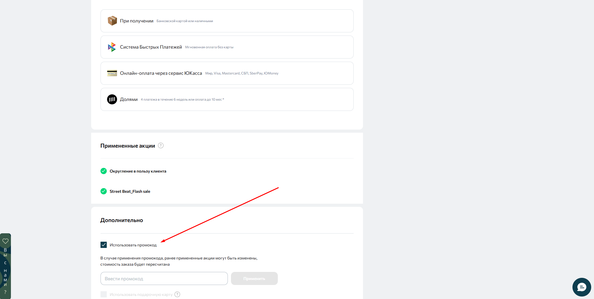 Проверьте, изменилась ли сумма заказа, и завершите покупку.